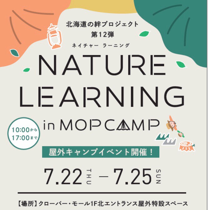 4連休中の24日(土)と25日(日)の二日間、三井アウトレットパーク札幌北広島で開催の屋外イベント「NATURE LEARNING in MOP CAMP」に出店致します。