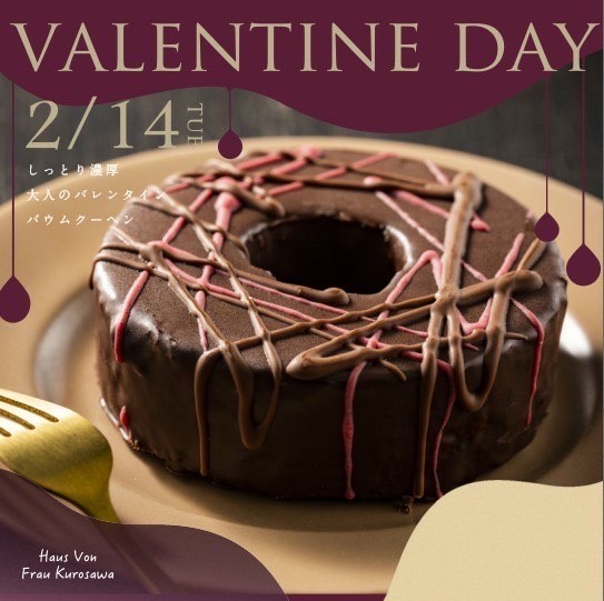 贅沢にチョコレートを使った、ラムの甘美な余韻を楽しむバレンタイン限定バウムクーヘンです。