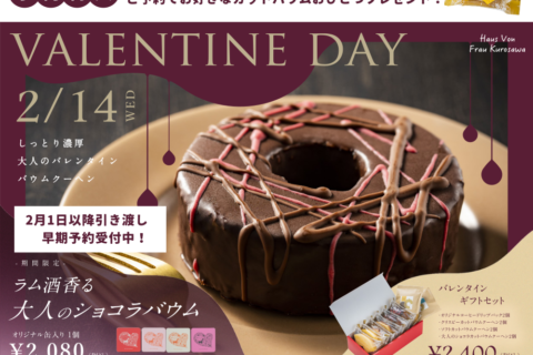 2024.01.16 予約特典あり!!バレンタイン限定商品♡ ≪ラム酒香る 大人のショコラバウム≫ 贅沢にチョコレートを..... 続きを読む 2023.12.29 【期間・店舗限定】バレンタインデーチョコチーズインバウム★ 1/1(月)より、販売開始! 毎年大人気の『バレンタインデーチ..... 続きを読む イベント2023.12.28 催事出店のお知らせ 催事出店のお知らせです。 【 東京都 東武百貨店池袋店 《..... 続きを読む 定休日のお知らせ2023.12.25 1月定休日・営業日のお知らせ 【富良野本店】 定休日 毎週水曜日 営業時間 10:00..... 続きを読む 新商品2023.12.16 【店舗・期間限定】クリスマス商品のお知らせ 本日、12/16(土)より富良野本店・サッポロファクトリー店・旭..... 続きを読む «‹141516›»