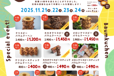 お知らせイベント2025.11.18 創業10周年!創業祭のご案内 11/21(金)~11/24(月祝)の4日間! 年に1度の《..... 続きを読む お知らせ2025.05.16 ありがとうの気持ちを込めて‥ ~ Happy Father's Day ~ 人気の父の日ギフ..... 続きを読む お知らせ2025.04.22 催事出店のお知らせ 催事出店のお知らせです。 【 大和 富山店《 初夏の大北海..... 続きを読む お知らせ2025.03.22 店舗補修工事に伴う休業のお知らせ 日頃よりHaus Von Frau Kurosawa富良野本店を..... 続きを読む お知らせ2024.10.19 ハウスフォンフラウクロサワ 旭川駅店 閉店のお知らせ 閉店のお知らせ 日頃より、ハウスフォンフラウクロサワ 旭川駅店..... 続きを読む 12›»
