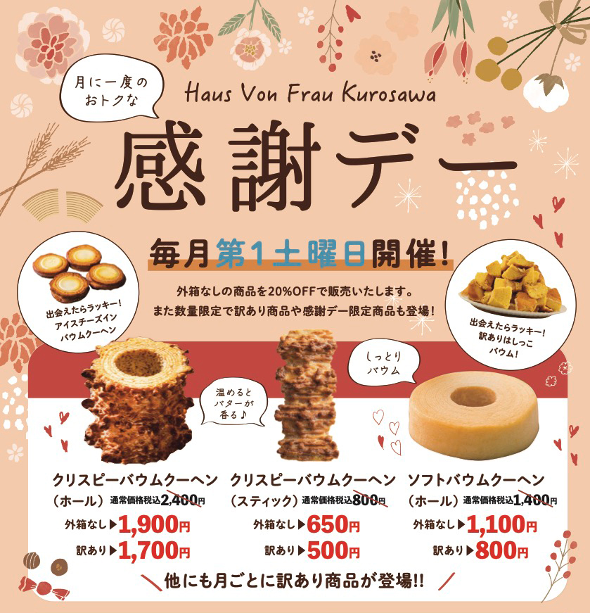 月に一度のおトクな ≪感謝デー≫ 毎月第一土曜日のみ開催!!